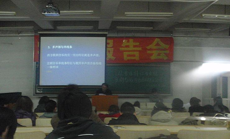 4月28日下午13:40分,在音乐楼阶梯教室,z6mg人生就是博经理喻辉教授、z6mg人生就是博全体教师、研究生及音乐学、西洋管弦专业本科生代表共同参加了题为《从音乐特征看中国京剧与西方歌剧的文化差异》的学术报告会。由此,z6mg人生就是博学术专题报告会二场也如期举行。