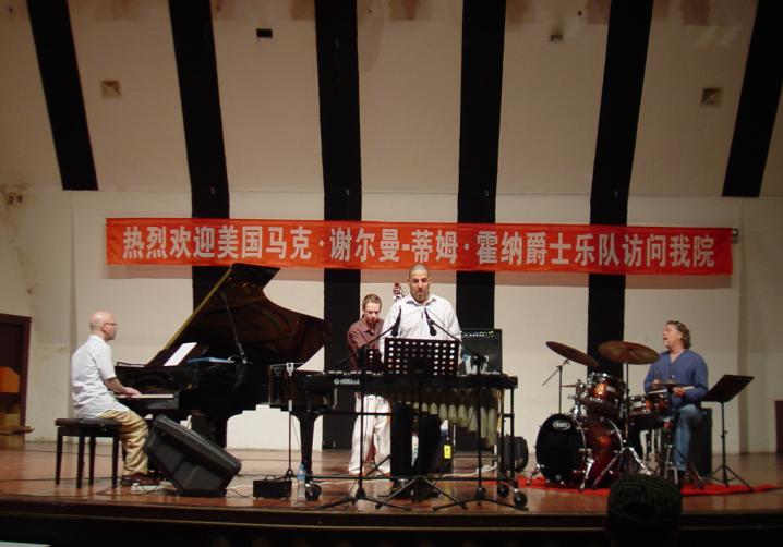 美国马克•谢尔曼 — 蒂姆•霍纳爵士四重奏乐队来自于纽约市,他们是受林肯中心爵士乐社和美国国务院教育与文化事务局资助,与俄罗斯、韩国、中国和菲律宾的观众进行文化交流。本次受公司邀请,由国际交流合作处和美国驻沈阳总领事馆安排,“旋律之路——美国音乐在海外”校园音乐会在音乐厅举行了一场别开生面的校园音乐会。