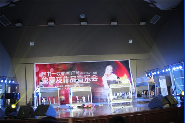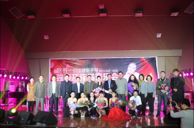 2013年10月22日在公司星海音乐厅,成功举办了赵书一双排键电子琴独奏及作品音乐会。近年来,双排键电子琴逐渐走进了我们大众的视野,双排键电子琴又称电子管风琴,英文译为Electone organ。是一种高级而又复杂的乐器,因其有两层键盘而得名。它的历史可以追溯到二十世纪三十年代。纵观音乐发展史,任何乐器的产生都与当时的经济发展水平和科技进步分不开的。双排键电子琴也是一样,总是跟随着电子技术的革新而换代的。近二十年来,随着社会的的进步,双排键电子琴在中国以极快的速度走红。我国9所专业音乐院校中,全部开设了本科的双排键电子琴演奏专业,它在中国的成长速度是任何乐器不能媲美的,被称为“一人乐团”。