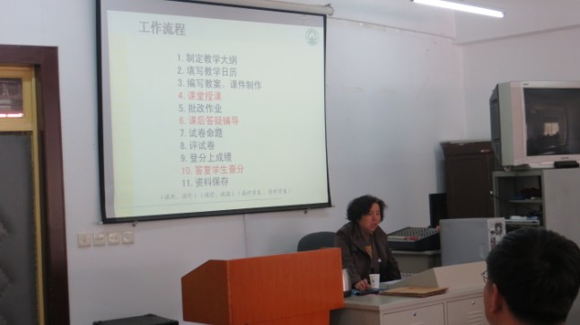 蔡敏教授就教学大纲的制定,教学日历的填写,教案的编写、课件的制作,课堂授课,批改作业,课后答疑辅导,试卷命题,评试卷,登分上成绩,答复员工查分,资料的保存等问题进行深入细致的讲解。