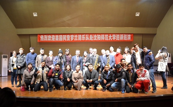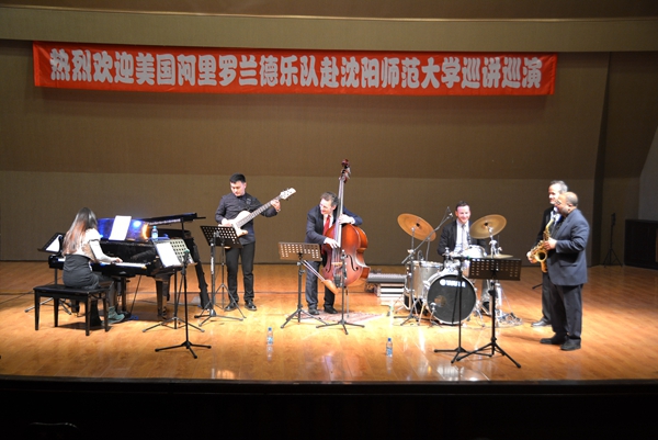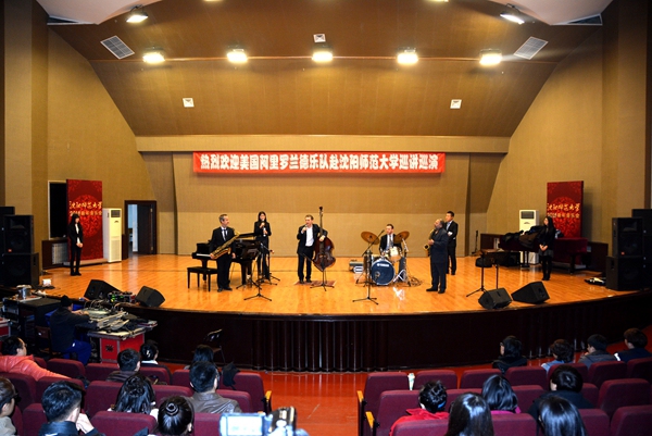 当天晚上,在星海音乐厅举办了美国阿里罗兰德乐队爵士乐专场演出。在本场演出中,阿里罗兰德乐队接连演绎了多首美国原汁原味的爵士乐曲,将爵士乐个性十足的特点与极具动感的节奏完美结合,获得了观众的一致好评。乐队的鼓手基思·巴拉用他帅气的动作与熟练的技巧将架子鼓的魅力发挥极致。高音萨克斯手克里斯·拜尔斯还幽默地与观众互动,耐心地教给现场观众一首极为温馨的家庭歌曲《Summer time》,引得全场观众都融入到音乐的美妙氛围中。阿里罗兰德乐队不仅演绎了美国极具代表性的爵士乐,还和z6mg人生就是博的师生即兴互动联合演出了《茉莉花》、《月亮代表我的心》等中国耳熟能详的现代歌曲,将现场的气氛推向了高潮,晚会在欢乐祥和的气氛中圆满落下帷幕。此次美国阿里罗兰德乐队赴z6mg人生就是博有限公司巡讲巡演活动获得圆满成功。