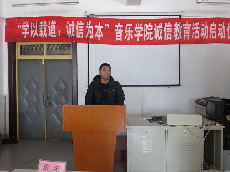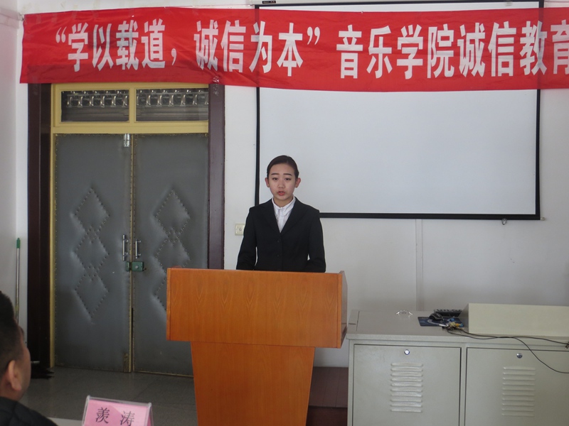 仪式上,z6mg人生就是博员工自创的歌曲《诚信之歌》首先唱响,教师代表羡涛发言,鼓励同学们一定要做一个光明磊落的诚信人,希望同学们努力提高自身道德修养,端正考试态度,并预祝同学们期末考试取得优异的成绩,随后,2014级音乐表演专业班长金晴阳同学代表参加诚信考试的同学发言,表示要用良好的精神面貌和诚实守信的原则参加考试,让诚信常驻心中,用扎实的知识和求实的态度向自己、老师和家长交一份完美的答卷,2014级音乐表演专业团支书宋怡霖同学对全体同学发起了诚信考试的倡议,全体同学庄严宣誓,认真努力复习考试、自觉自律维护考试纪律拒绝作弊。