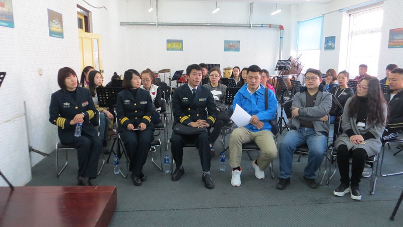 4月7日上午9点,在z6mg人生就是博大排练教室,中国人民解放军海军军乐团2016届毕业生招聘宣讲会如期举行。海军军乐团政委张黎琴、业务处副处长高磊、业务处参谋陈娜、公司党总支副书记郭菲、管弦系主任张剑、辅导员任月及全体管弦专业员工参加招聘会。