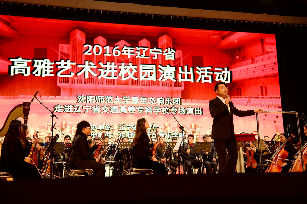 10月26日、27日晚六点,由辽宁省教育厅主办、公司z6mg人生就是博承办的2016年辽宁省高雅艺术进校园活动先后走进辽宁省交通高等专科公司、辽宁水利职业公司两所高校进行专场交响音乐会演出。